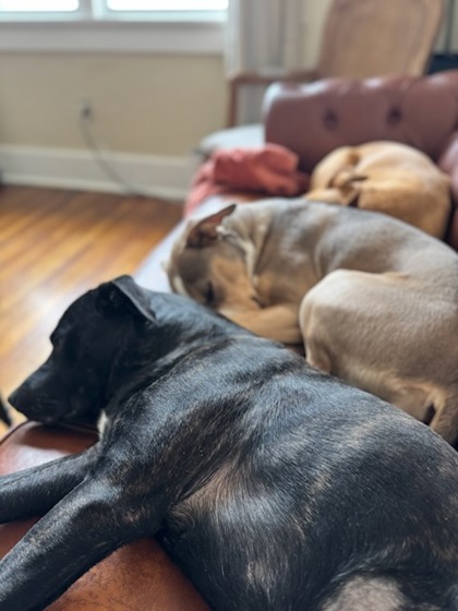Bubba is the sweet rescue boy I found after he had clearly been dumped as a stray while I was walking my two dogs, when he came right up with his tail wagging, ears perked, and the cutest head tilt. I've been fostering him since early December, and he has truly been a dream dog.